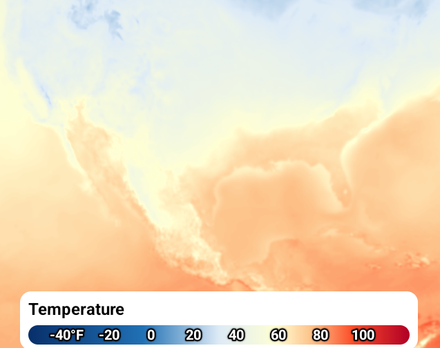 Legends are used to inform the user about what various colors and symbols in a visualization mean, especially when it comes to weather data. Alongside our built-in weather layers, the Xweather MapsGL SDK also includes pre-configured legends that correspond to each weather layer where applicable. You just need to add a legend control to your map controller and these weather legends will be added and removed for you automatically.