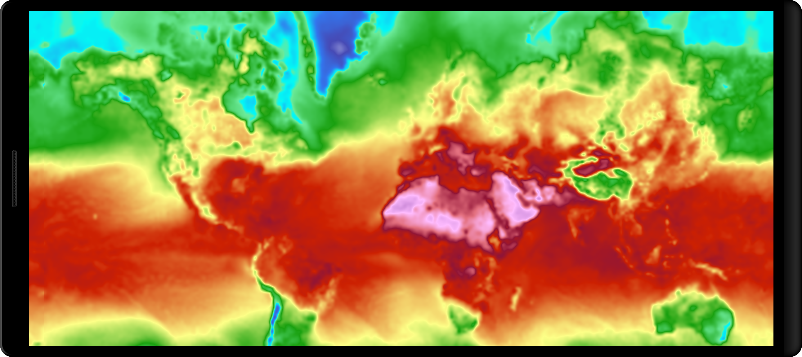 Sample fill renderers are configured with a color scale and interval, where you provide ColorStop values to define the color stop positions and color values. The underlying data from the source is then colorized based on the color scale when rendering data to the map. Sample fill weather layers include most encoded raster datasets, such as temperature, wind speed, dew point, precipitation, etc. All weather layers whose type is sample uses this render style and can be customized.