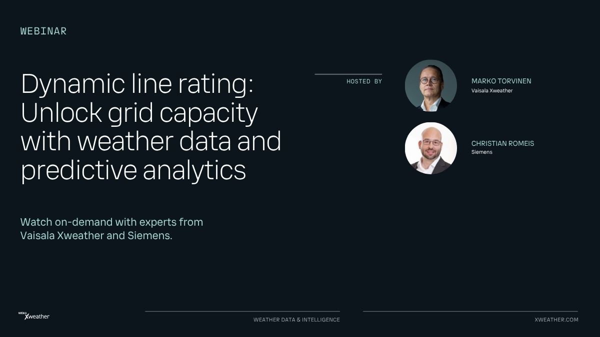 Dynamic line rating (DLR) depends on precise, real-time weather data to safely increase grid capacity and reduce congestion. Xweather Optimize delivers hyperlocal weather observations and forecasts over a secure API for seamless integration with DLR software and grid operating systems.